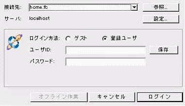 この手順は、登録ユーザに適用されます。ゲストユーザの場合は、ここで説明している[接続先]欄を書き換えて、[ゲスト]を選択してください。