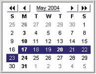 ウィンドウを分割している場合は、この小さな月間カレンダー上で日にちを選択すると、もう一方のペインにその日のカレンダーが表示されます。この小さな月間カレンダーのボタンをクリックすると、月や年を変えることができます。