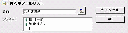 ・サーバに登録されているすべてのユーザと会議室(および自分で登録したコンタクトとメールリスト)は、[ディレクトリ]に保存されています。[ディレクトリ]にあるユーザや会議室にメッセージを送信するには、まずその名前の一部を入力してください。入力した名前が[ディレクトリ]内で重複していなければ、名前全体が自動的に入力されます。重複があれば、該当する名前がすべて一覧表示されますので、送信したい名前をダブルクリックしてください。