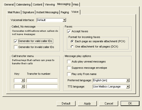 On your client, set your voice messaging preferences on the FirstClass Preferences form. Choose Edit > Preferences, then go to the Messaging - Voice tab.