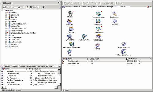 ・ブラウザの[アドレス]フィールド(または右側のペインに表示されたWebページ上のリンク)から、FirstClassエクスプローラバーの[ブックマーク]フォルダなどのフォルダにURLアイコンをドラッグできます。