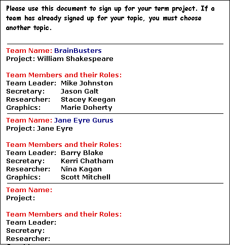 This is a sample document students may use to sign up for their projects.