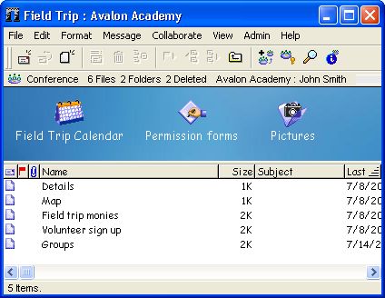 Looking for an easy way to handle the details of your field trip? Use FirstClass to create a field trip conference for parents and students. From one location, parents can access important information such as the permission form, map, volunteer information, payment information, and any other important details. You can use a calendar to post important dates, such as the trip date or the deadline to return the permission form, and you can follow up with digital pictures of the trip.