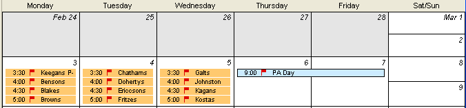 1 He schedules private meetings with each parent by creating new events for each set of parents in the Parents calendar.