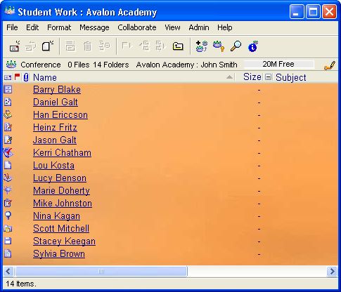 1 He creates a main conference called Student Work in the classroom conference, and then he creates a personal subconference for each student where they will post their work.