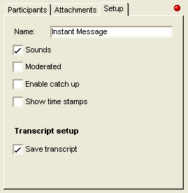 John sets up the instant messaging session to automatically send the transcript to his Mailbox when the session has completed. To do this, he checks the Save transcript box on the Setup tab.