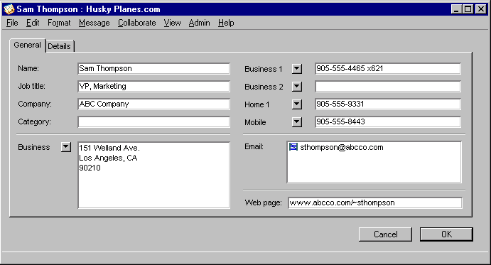 Use the contact management feature of FirstClass (formerly the address book) to: