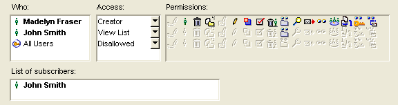 She also subscribes the teacher to the contact database by entering his name in "List of subscribers". This puts an alias of the database on the teacher's Desktop. To access the database items, the teacher simply drags the database into his Contacts folder.