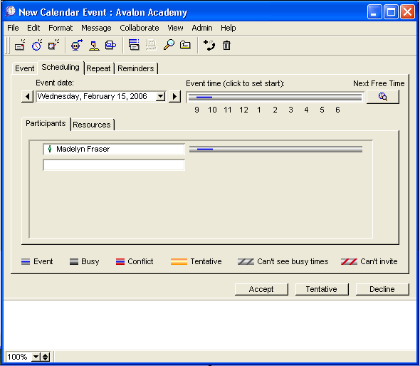 Want an easy way to notify everyone of upcoming school inspections, provide an electronic trail, and avoid the cost of paper copies? Use a FirstClass calendar to schedule the event. It can appear in the group calendar, as well as in any personal calendars you wish.