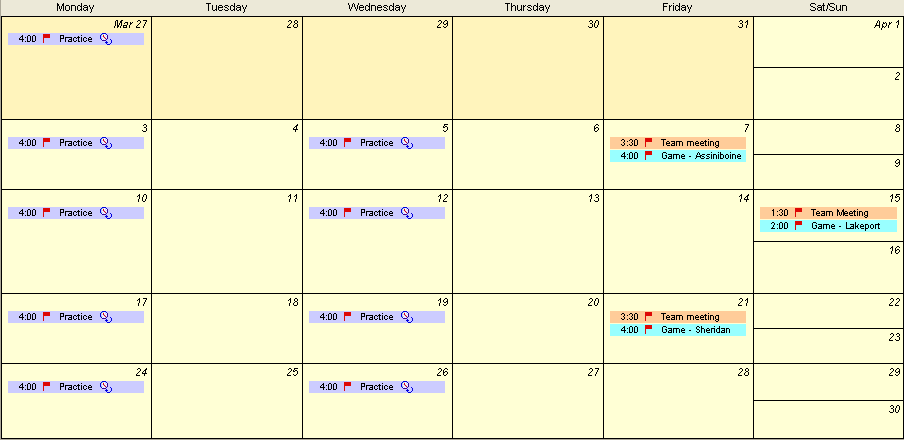 Let's look at some of the items in this conference. This is the group calendar the coach uses to post games and practices.