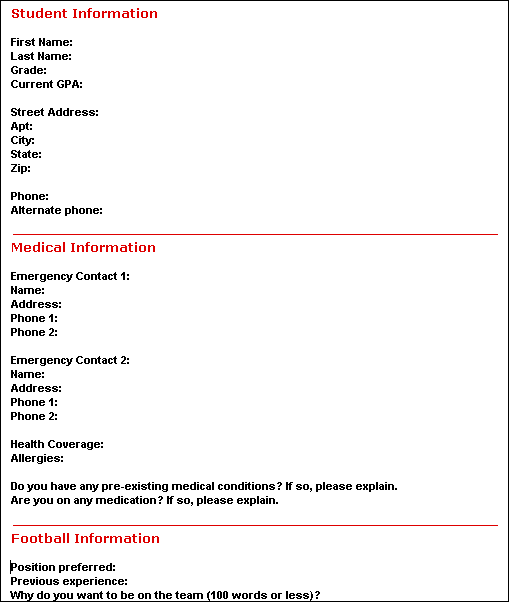 This is the sign up sheet that interested students can complete and forward to the coach. It is a stationery form that is preaddressed to him.