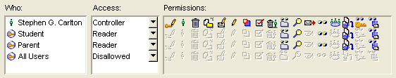 The coach has Controller permission so he can post and update information. Students are given Contributor permissions at the main conference level, and then Read only permissions for each of the subconferences. This allows students to access and forward the sign up sheet.