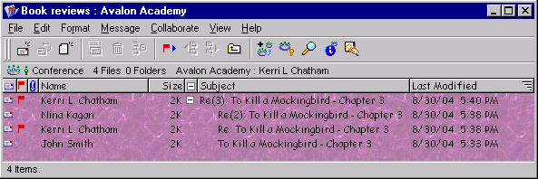 John posts a message in his class conference to start a discussion about the book his students are reading. Over the next couple of days he sees who is contributing to the discussion. He can then grade appropriately on participation.
