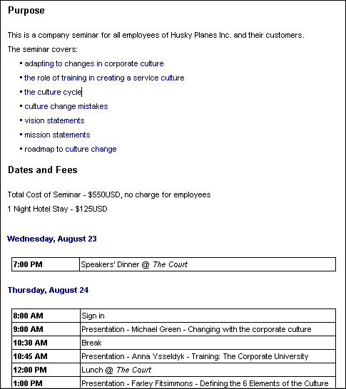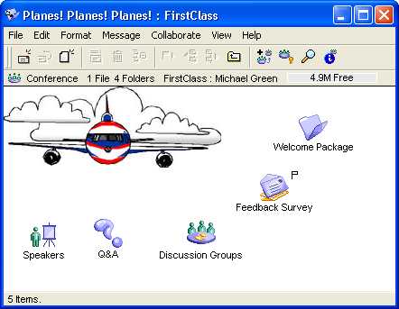 You can also use FirstClass to hold the seminar. Provide participants with laptops so they can view the material directly, post questions on the fly, and follow along with presentations. Have presenters use FirstClass presentations, and have discussion groups post their responses to a FirstClass conference.
