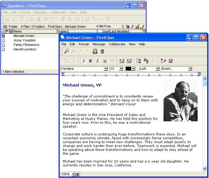 Before the seminar, each of the speakers creates a FirstClass presentation to assist them in their own presentations.