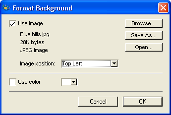 At Image position, John can set the background image to be displayed in the top left corner of the document window, or he can have the background appear as a tiled image. John can also select " Use color" and a color from the color selector to set a background color in the document.