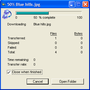 The next time one of John's students opens the conference, a file transfer window will appear to show that the new images are downloading to his settings file: