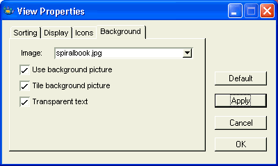 4 He then selects "Use background picture", "Tile background picture" (the image will be repeated to cover the entire background), and "Transparent text" (object names will appear without a white box around them).