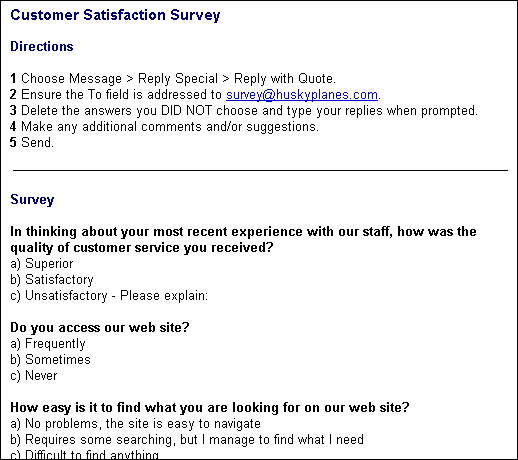 Michael Green is the VP of Sales and Marketing at Husky Planes. To get feedback about the service his employees are providing, he decides to survey their customers.