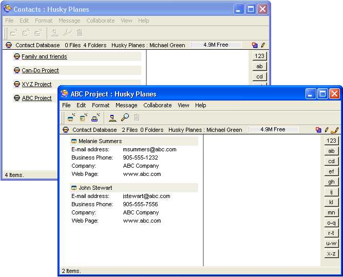Once Michael has finalized the survey, he creates a mail list and sends it. Since he shares all of his employees' contact databases, he has all of the customers right in his Contacts folder.