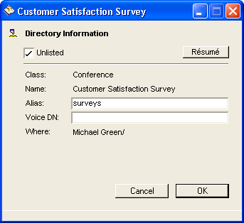 This is where customers send their completed surveys. He assigns an email address to the conference by clicking Directory on the Permissions form and entering the desired email address in the Alias field.