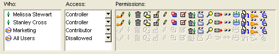Melissa sets permissions on the Performance Reviews subconference so that only she and Stanley can access the conference. Further, she has complete control to create and edit performance reviews, while Stanley can contribute to the conference but not change reviews.