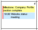 He can also differentiate events with color. For example, he may use one color to schedule meetings, and another to schedule milestones.