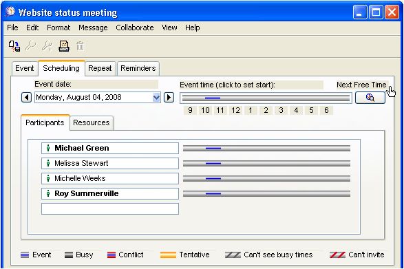 When the team leader decides to schedule a meeting in FirstClass, he simply goes into the project's group calendar and creates an event.