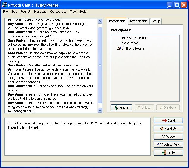 The creator of the instant messaging session can easily save a transcript of the open session right from the Setup tab. It is automatically saved to the creator's Mailbox when the session closes.