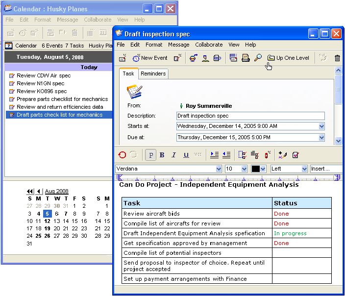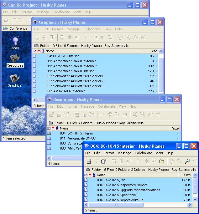 Roy Summerville is responsible for finding an aircraft for a potential customer, a Canadian Doo Wop music group. He created a project environment for his "Can-Do" project, which he shares with other members of his team.