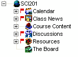There is a public "classroom" area for each class that is offered in a current semester. Within each class, there are a number of areas that are available to both the teacher and the students. The class may include any combination of these areas, depending on the permissions that the administrator has set up.