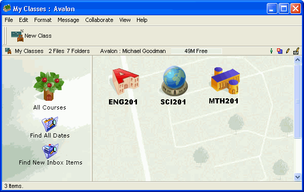 In addition to the standard FirstClass icons on each Desktop, there is a My Classes area. This is the door to FirstClass ED.