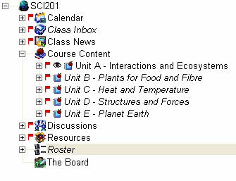 Anything that is not visible to students is in italics. You can see in the image below that the Class Inbox, Roster, and unpublished units are all in italics.