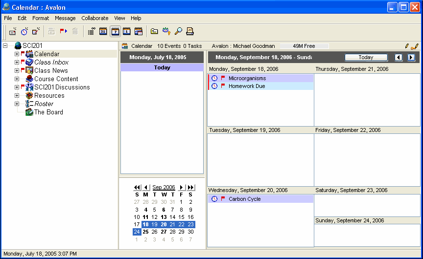 The class calendar in FirstClass ED lets you record homework due dates and dates for tests and special events. This forces students to take responsibility for their own participation in courses. This rules out concerns that they couldn't find their agenda, they forgot to bring it home, or they forgot to record the due date, because all important information is always online whenever they log into their accounts.