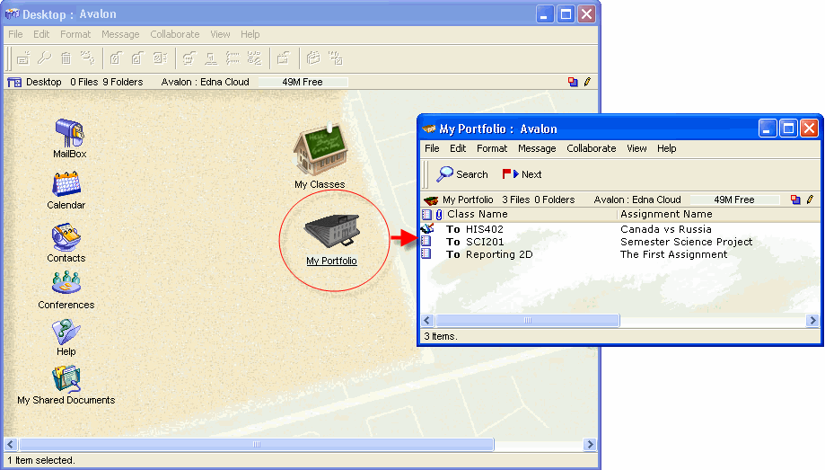 The student's Portfolio is a collection of work the student has completed. It may showcase student achievement, or provide a sample of current work. Work is added to the Portfolio by being dragged from the Mailbox.