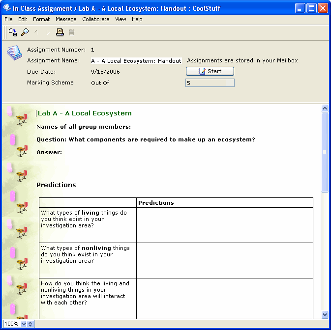 To start an assignment, click Start from the assignment in the Course Map. Then complete the assignment online from your Mailbox, and click Hand In when you are finished. This way, the assignment is completely managed from your Mailbox, and you never have to pick up a pen or print out the assignment.
