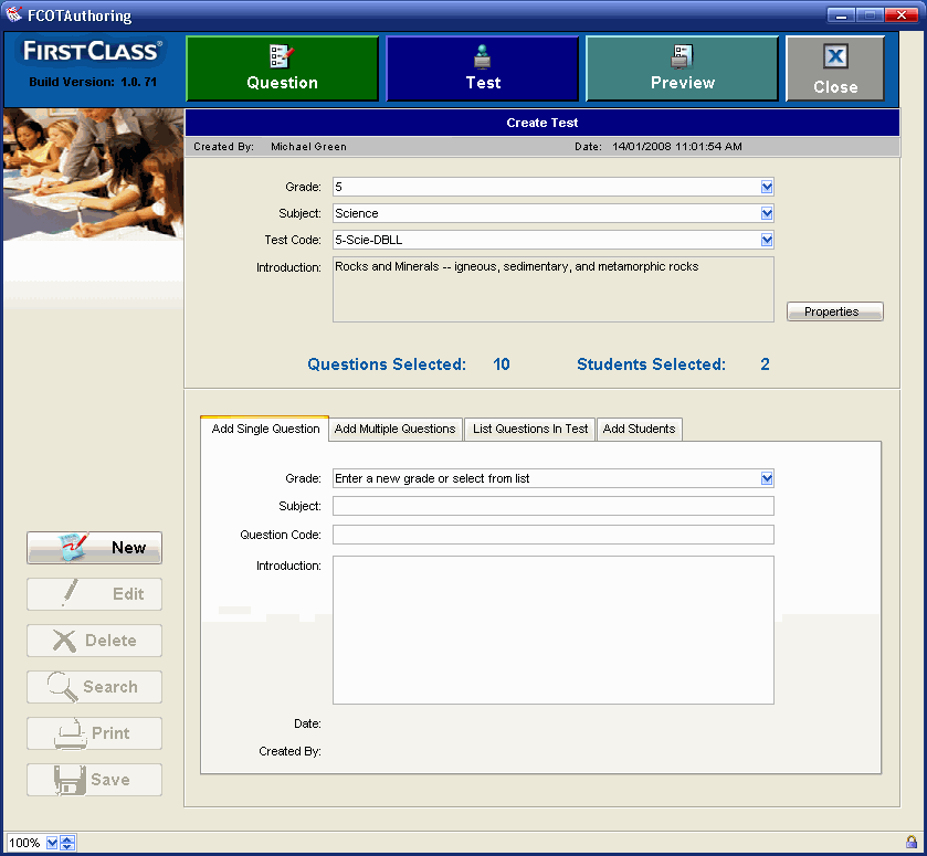 FirstClass lets you create and administer tests using a new application that is comprised of three tools: Authoring, Testing, and Reporting.