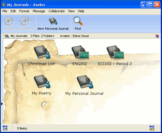Your My Journals area contains all of the class journals and private journals you have created. Class journals are visible to the teacher, but private journals are only visible to you.