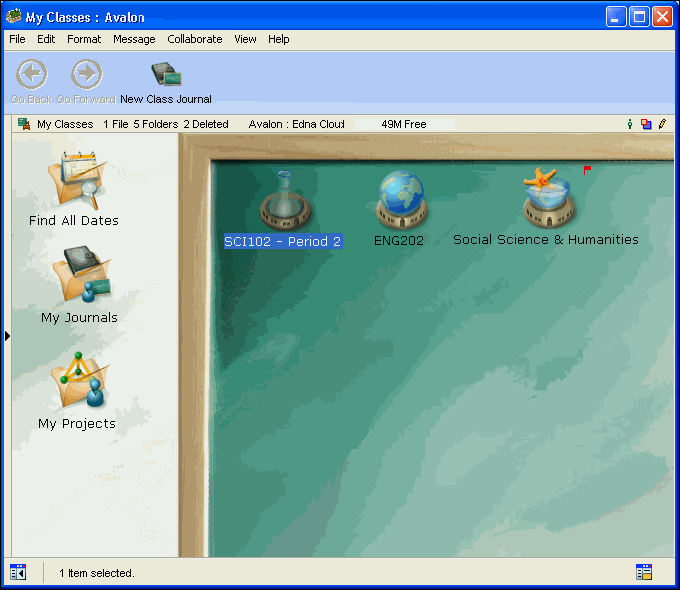 When you open My Classes, you will see all of the classes you are enrolled in for the current semester, as well as your journal and project areas.