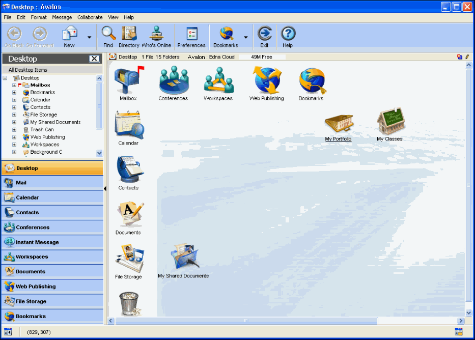When you log into FirstClass ED, you can access your classes, your portfolio, and your Mailbox. This is in addition to any other conferences you have been given access to.
