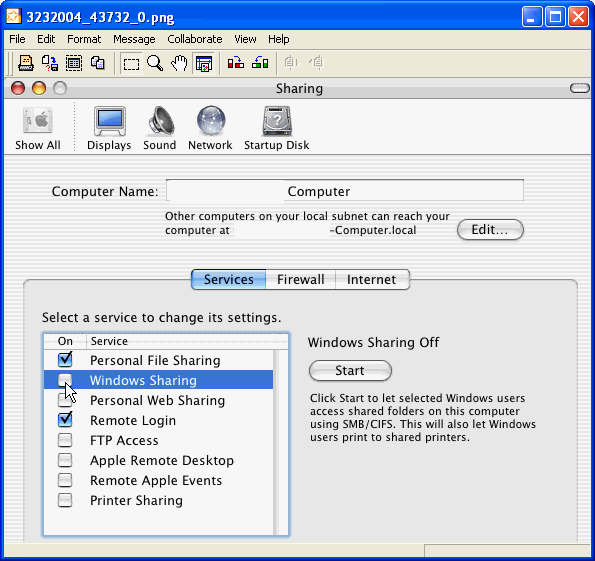Before activating the Internet Services CIFS/SMB module, you must deactivate any other file sharing server running on your Internet Services machine. Use these steps to disable file sharing on