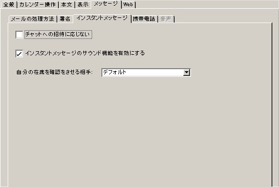 このタブを使用して、インスタントメッセージ(チャット)のデフォルト設定を行います。