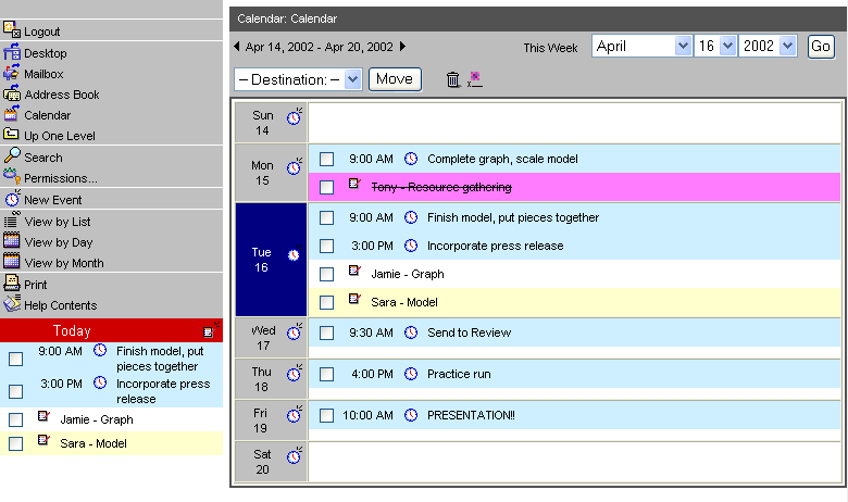 The Movie Tools resource calendar permits the employees to book convenient times to take the movie equipment home so they can do their own presentations.