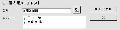 _サーバに登録されているすべてのユーザと会議室 (あなたが登録したアドレスとメールリストを含む) は、[ディレクトリ]に保存されています。[ディレクトリ]にあるユーザや会議室にメッセージを送信するには、まずその名前の一部を入力します。つぎに、Tabキーを押すか、EnterキーとReturnキーのどちらかを押してください。入力した名前が[ディレクトリ]内 で重複していなければ、名前の全部が自動的に入力されます。重複があれば、一致する名前がすべて[ディレクトリ]に一覧表示されます。希望する名前を選択して[宛先:][CC:][BCC:]をクリックするか、その名前を該当するフィールドにドラッグしてください。
