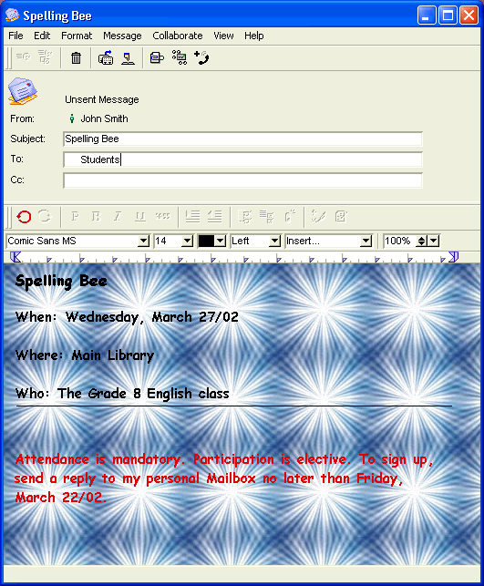 A school is just one member of a greater community. You can use FirstClass to provide noteworthy information to faculty, students, and parents concerning what is happening locally in your school and surrounding area. Some topics may include: