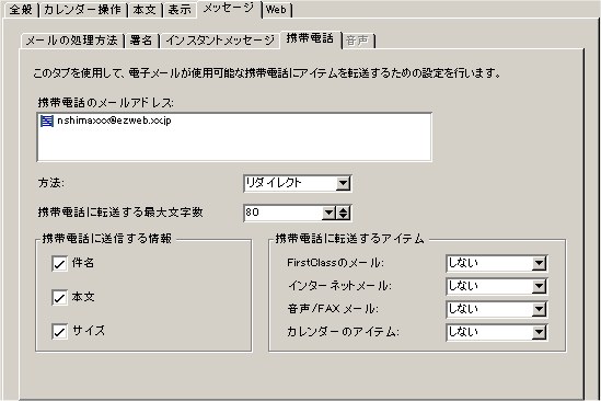 転送先の携帯電話で表示可能な最大文字数を設定します。FirstClassは、ここで設定した文字数にメッセージを短縮します。
