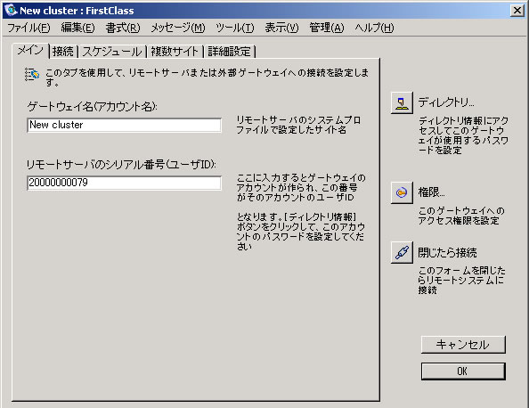 新しいクラスタゲートウェイの[ディレクトリ情報]フォームと新しいクラスタの[ゲートウェイの設定]フォームを両方とも閉じて保存してください。