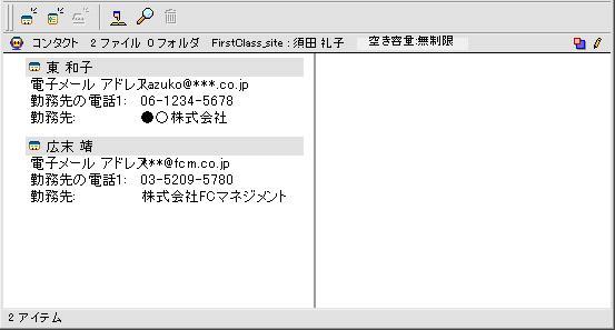 大きなアイコンで表示するには、[表示]>[アイコン表示]を選択します。小さいアイコンで表示するには、[表示]>[小さいアイコン表示]を選択します。複数列の一覧で表示するには、[表示]>[詳細表示]を選択します。エントリをカードのように並べて表示するには、[表示]>[インデックスカード表示]を選択します(特にアドレス情報を表示するときに便利です)。