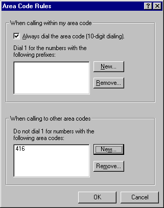 If there are any area codes which are entirely toll-free from your area code, click New and enter the area code.