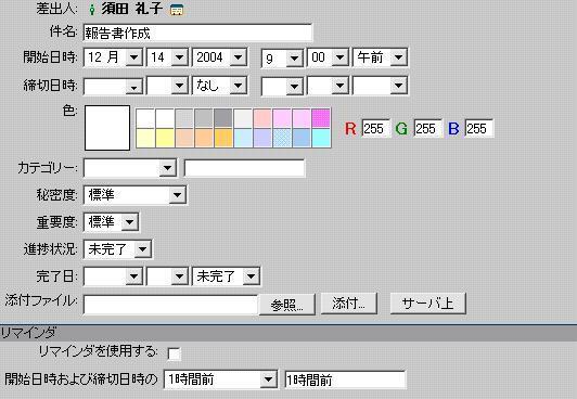 前もって予定を通知するリマインダ機能を使用するには、[リマインダ]セクションを編集してください。参加依頼を受けたユーザは、各自に送られた予定のコピー上でリマインダを変更することができます。